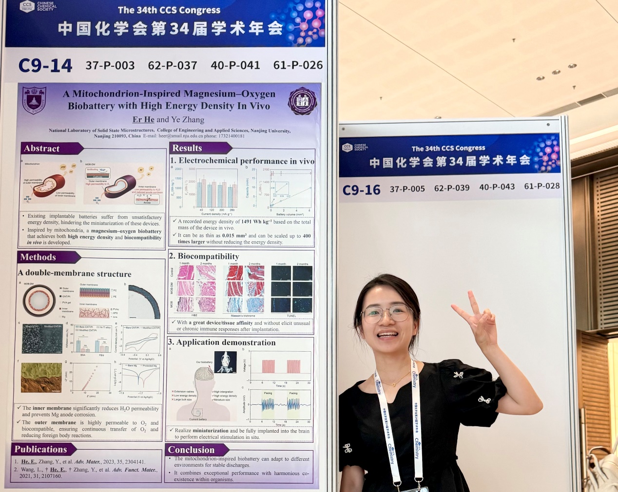 betway88西汉姆联张晔课题组博士生何儿的“受线粒体启发的体内高能量密度镁-氧气电池”墙报斩获大会优秀墙报奖。