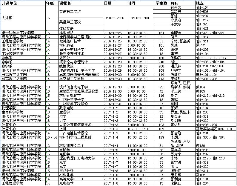 【期末考试】2016-2017第一学期期末考试安排(本科生)