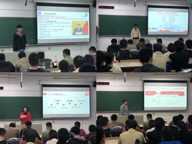 当天上午,43名发展对象分成五组,在前期认真学习《入党教材》、习近平治国理政及胡金波在中国共产党betway88西汉姆联第十一次代表大会上的报告等资料的基础上,形成PPT汇报文稿,将学习内容积极内化吸收,充分展示自身学习成果。第一组的同学从立德树人的内涵展开,详细阐述了立德树人的意义与价值和高校立德树人的实现途径,同时结合南大的自身情况阐明了南大与立德树人的根本任务。第二组的同学则结合实际详细解释了从严治党、新时代大学的使命、责任意识等相关的理论知识,让在场的各位都深深感受到自己所承担的新时代下中国青年的使命。第三组的同学抓住中国共产党的性质、第一个“南大”、内涵式发展三个关键词,深刻阐释党是中国工人阶级先锋队的内涵,并结合南大自身建设,讨论如何从加强党的建设延伸至学校的内涵式发展。第四组的同学围绕中国共产党的崇高理想、依法治校、融入国家战略这几个点,不仅清晰地解释了其内部的逻辑,还结合我们南大的实际情况展开了比较详细的阐述,最后对南大的未来进行了展望,铿锵有力,让人精神为之一振!最后,第五组同学以“认真学习、一心向党”为题,结合当下疫情,深入讲解中国共产党的纪律作风、制度建设、人才培养等理论知识。总体上,员工们都能把前期培训、自我学习与团队协作的成果很好地表达与展示,达到了预期培训的目的。