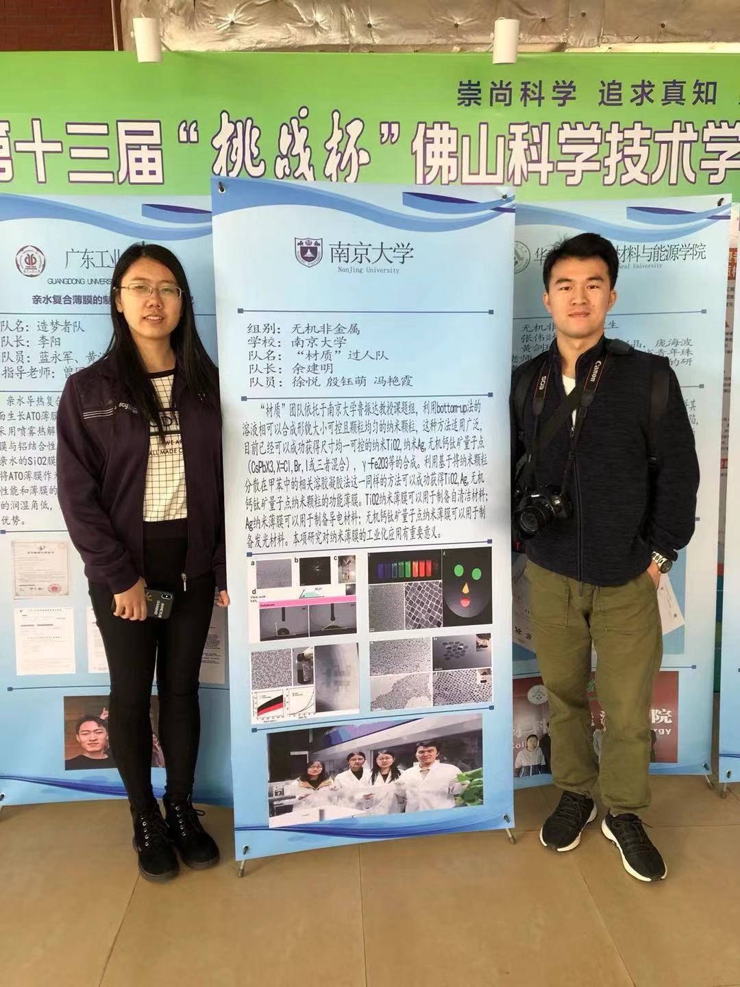 鲁振达课题组的“多功能纳米油墨的合成及其膜的制备”探索一种适用于多种纳米粒子的合成方法和成膜方法,通过高温溶液相法合成出纳米颗粒,然后将这些纳米颗粒分散在稳定剂中,再加入有机高分子和助剂得到功能油墨。该项目获得无机非金属分赛区的二等奖。唐少春课题组的“基于混合价态NixCo3-xPy电极材料的高面能量密度固态超级电容器”获得分决赛二等奖,“聚能”团队同学在演示PPT环节时的自信和从容赢得了老师的赞扬同学们也从原理和创新点进行深入浅出的讲解。另一支团队“科热”团队“基于高效节能热转化电热膜的智能控温电热板开发”在金属材料赛区参加比赛。通过对碳纳米管改性制作而成的复合材料电热膜,具有热转换高效、轻薄柔韧、面式均匀加热、远红外发射、节能环保等优异性能。将电热膜、封装材料以及铝板组装成的加热板,比传统电阻丝加热方式的功耗降低了26%,而且具有升温迅速,在高温下可长期稳定使用的优势。经过紧张有序的展示与答辩程序,作品获得了分赛区的三等奖。