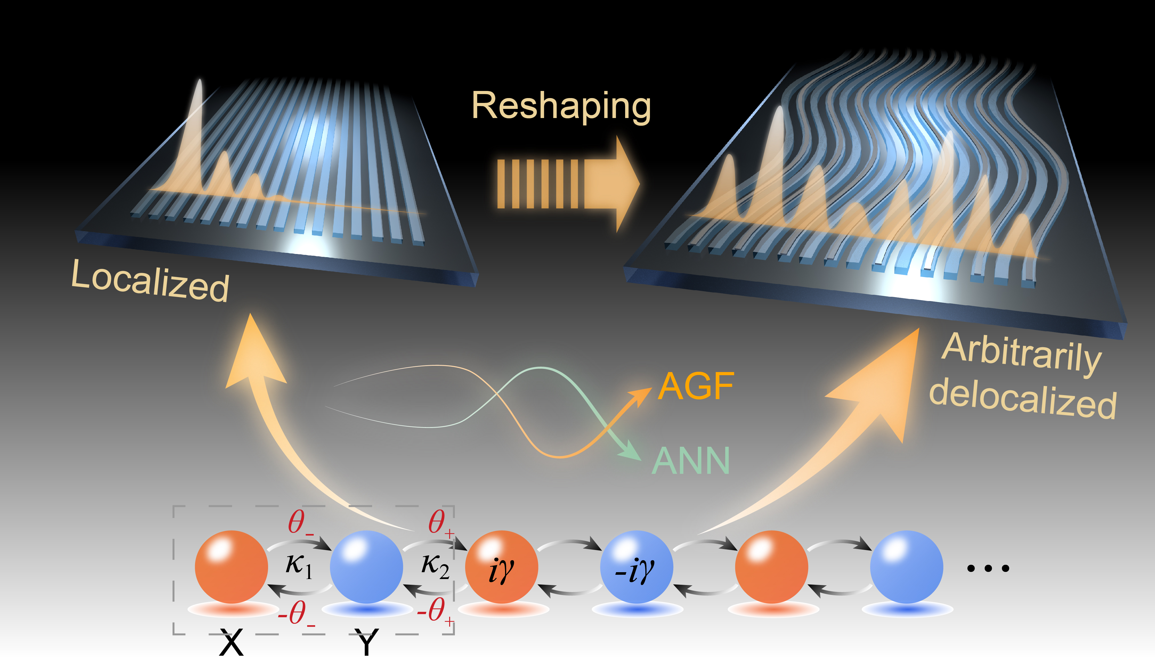 图1. 人工规范场调控下拓扑态从局域到完全扩展的转变