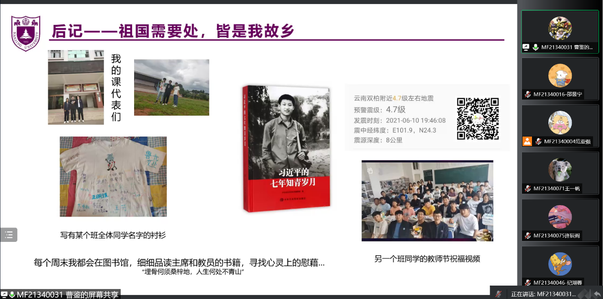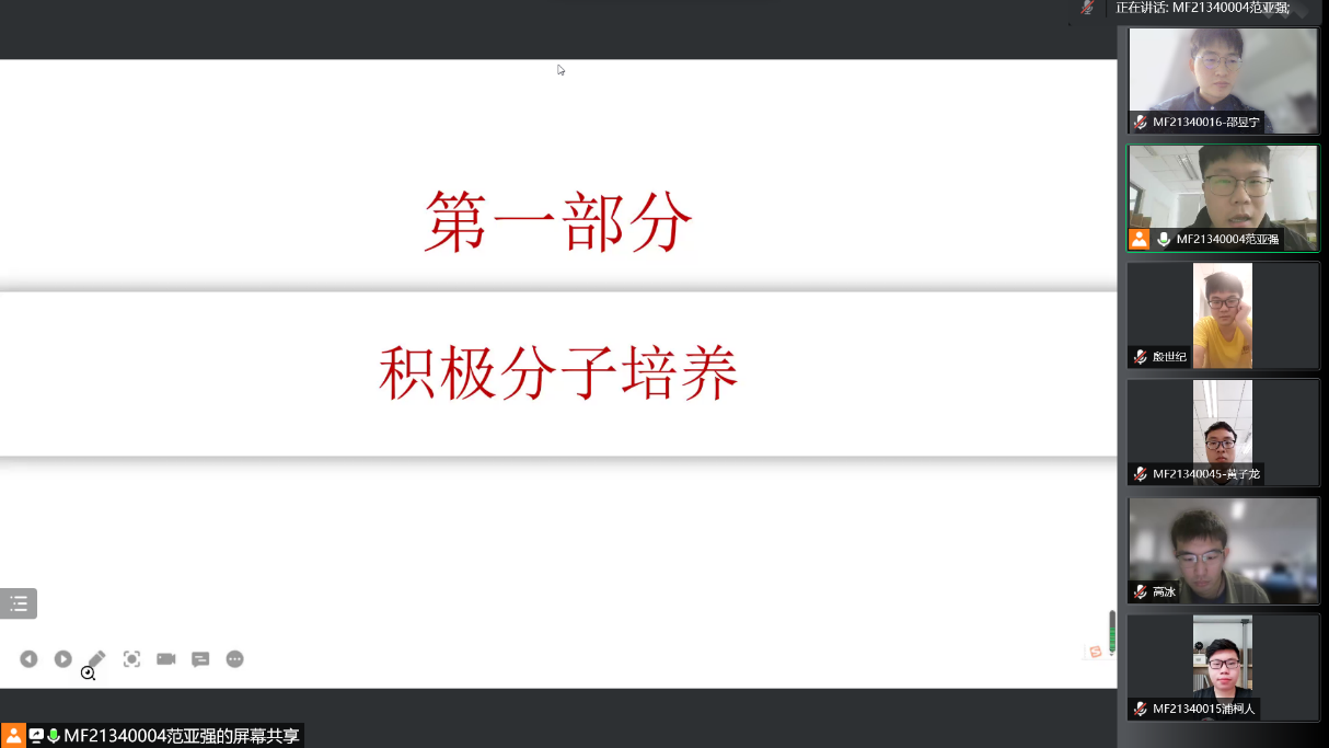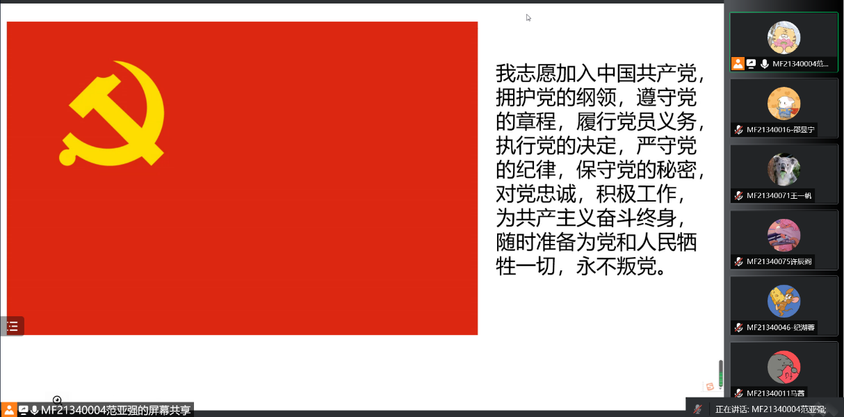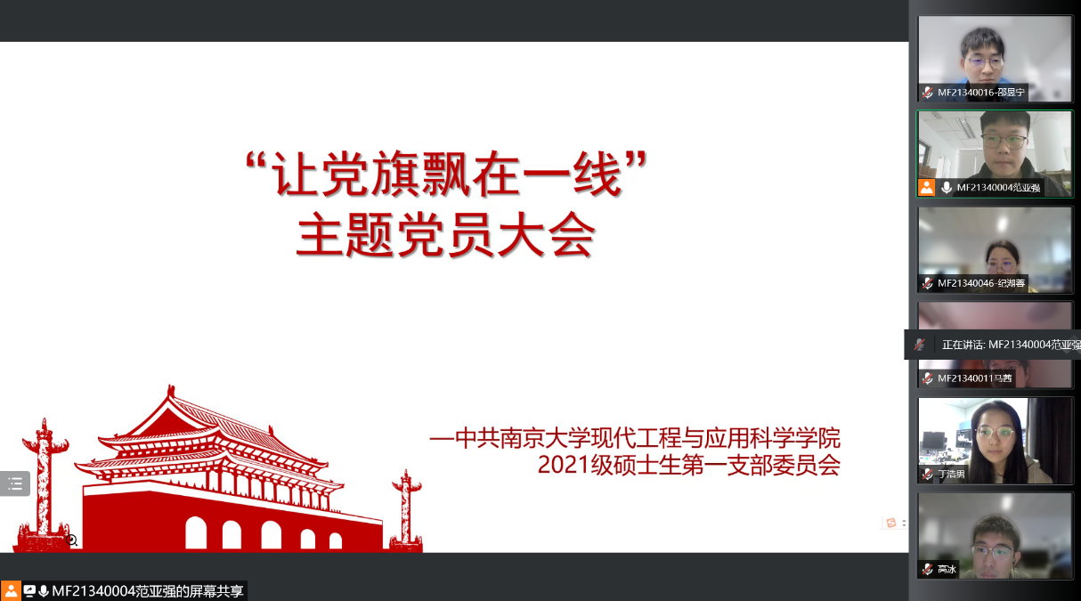 至此,2021级硕士生第一党支部“让党旗飘在一线”线上主题党员大会圆满结束。