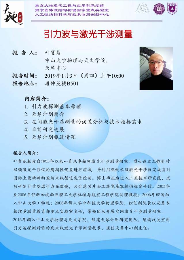 报告人:叶贤基,中山大学物理与天文学院教授、博士生导师