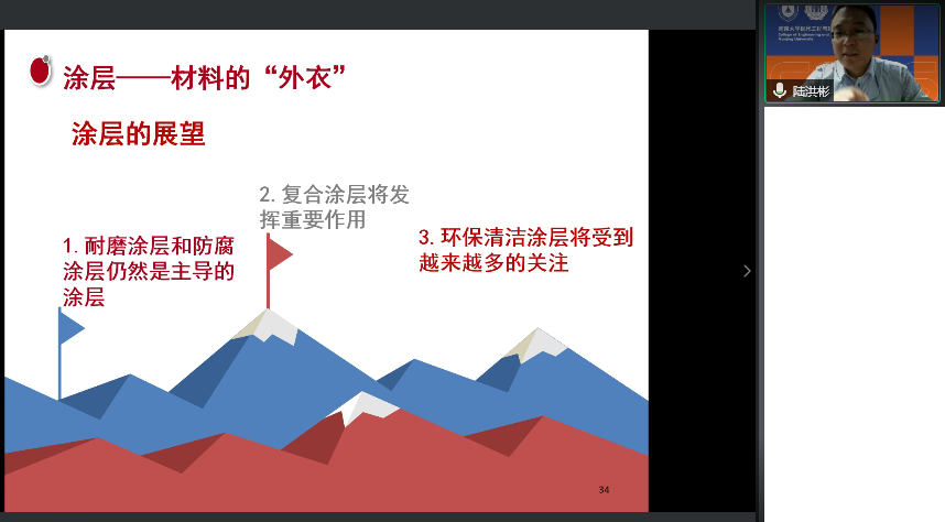 2020年12月11日,我们有幸邀请了betway88西汉姆联海安高新技术研究院的陆洪彬博士,依托腾讯会议平台,为同学们带来了题为“新型涂层材料的研发与工程应用”的报告。
