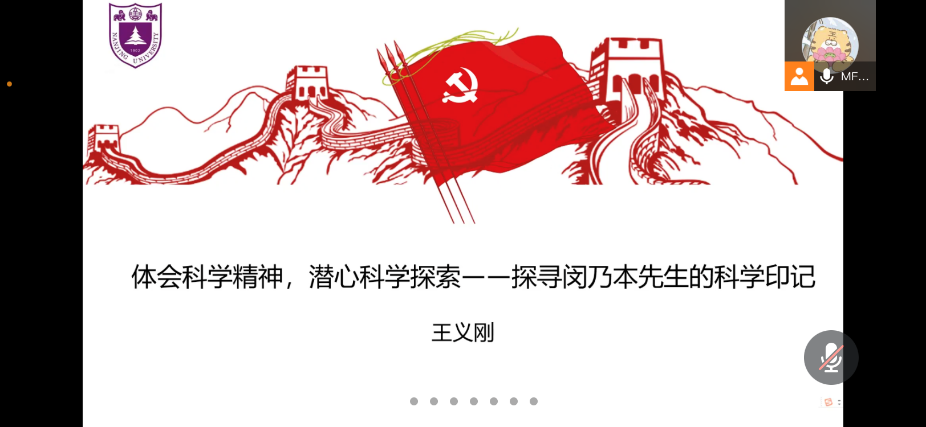 王义钢同志首先进行题为“体会科学精神,潜心科学探索——探寻闵乃本先生的科学印记”的主题党课。他介绍了中国科学院院士、南大材料系的创始人闵乃本先生的科研经历,闵院士提出了“介电体超晶格”的概念,建立了“多重准位相匹配理论”;他和合作者研究发现了介电体超晶格中准相位匹配弹性散射和非弹性散射的增强效应,将Frank螺位错机制与理论推广为更为普遍的缺陷机制与理论,成为经典晶体生长理论近几十年来最重要的发展之一。闵院士曾经说过:“自古以来,中国知识分子毕生的最大追求,就是能将自己的知识贡献给祖国和人民。”