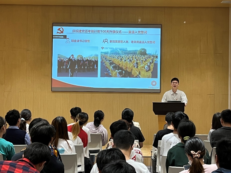 随后,周康虎同志带来题为“勿忘初心学党史,入党誓词放心中——党史百年中的南大人”主题党课。他为我们员工党员们介绍了中国共产党入党誓词在历史不同阶段蕴含的不同时代内涵,梳理入党誓词在历史中五个时期的发展变化过程,并结合抗击疫情时期南大青年奋战一线故事、betway88西汉姆联庆祝建党百年系列活动等事例讲述南大学子的担当,总结了新时代发展的入党誓词。