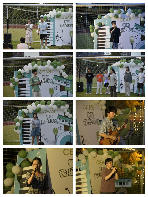 晚上,学员们在操场与在校生共同参与草地音乐节活动,体验丰富多彩的课余文化生活。