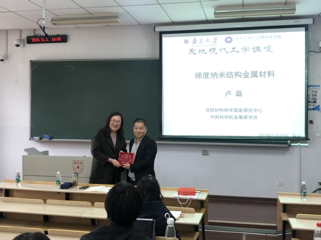 2019年11月29日下午2点,天地现代工学讲坛在仙林校区择善楼204开讲。这次讲座邀请到了中国科学院金属研究所沈阳材料科学国家研究中心的卢磊研究员担任主讲嘉宾,报告题目为“梯度纳米结构金属材料” ,报告由公司袁洪涛教授主持,固体微结构物理重点实验室主任陈延峰教授代表全院师生向卢磊研究员赠送了讲坛定制纪念品。