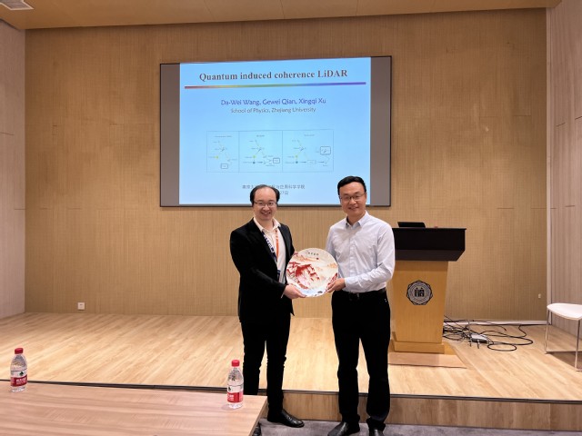 2023年10月27日上午十点,“现代工学光电论坛”在镇江楼D112会议室开讲。国家杰青获得者、浙江大学物理学院百人计划王大伟研究员受邀担任本次主讲嘉宾,做了题为《量子诱导相干光雷达》的报告。讲座由张勇教授主持,李涛副经理为本次讲座致辞,并代表论坛向王大伟研究员赠送了纪念品。王老师的报告内容丰富精彩,深入浅出地介绍了量子诱导相干光雷达的研究背景和科学价值,其独特的抗噪能力有重要应用前景。报告后,王老师与在场师生进行了深入讨论,会场气氛热烈,学术交流氛围浓厚。
