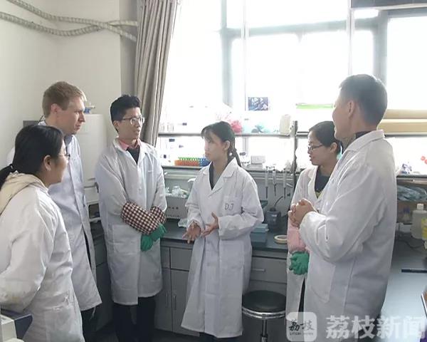 图:荔枝新闻报道公司国际化办学情况(约克教授左二,于肖雅左四,阮刚教授右一)。