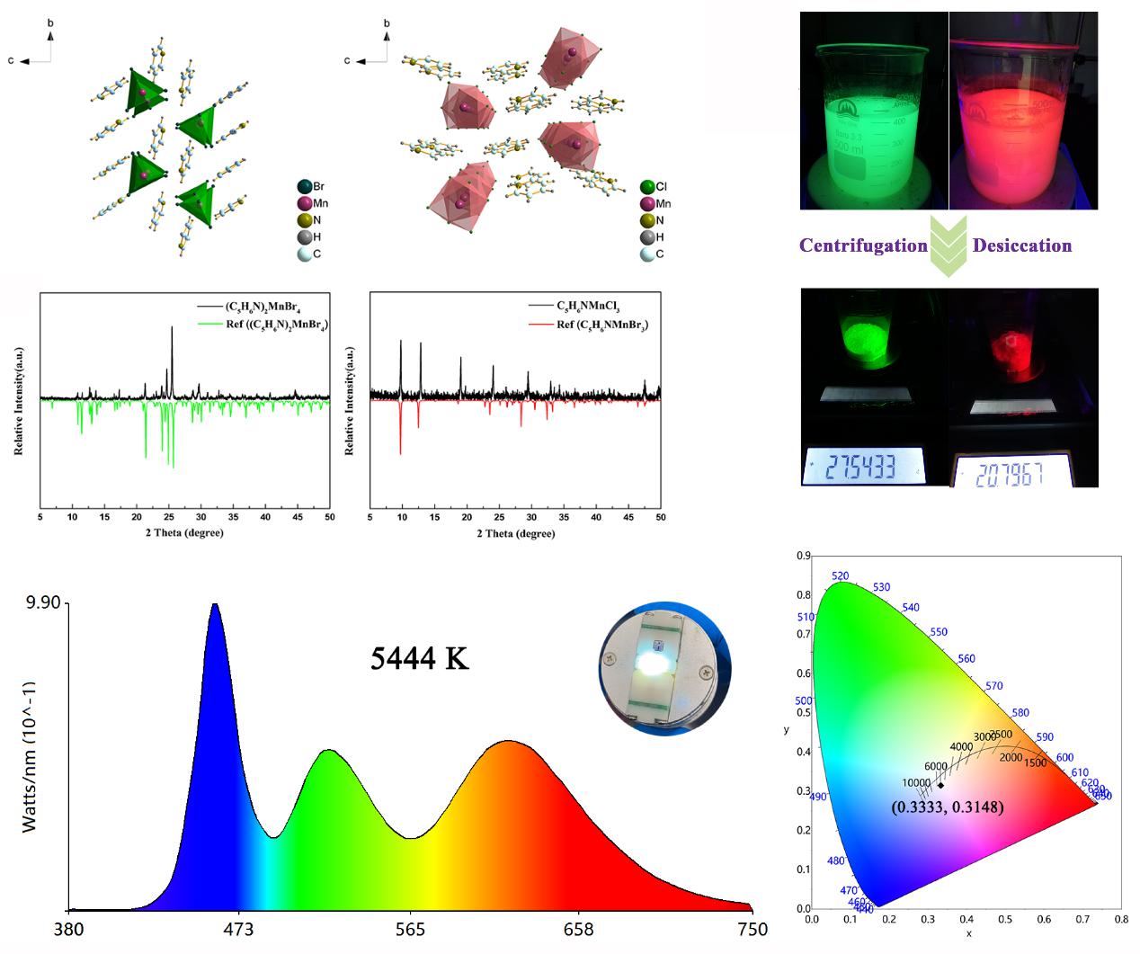 图二:发光吡啶锰卤化物钙钛矿材料的制备及在白光LED领域应用。