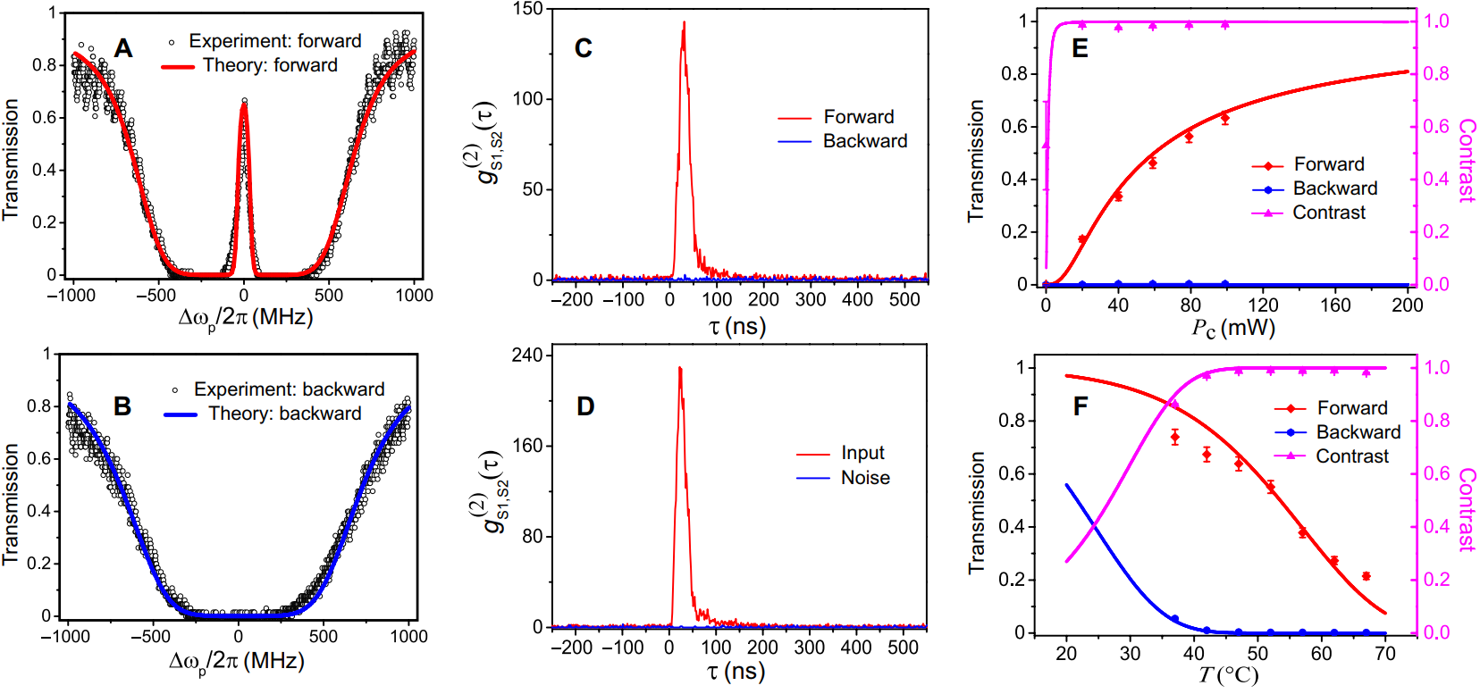 图2. 单光子非互易实验结果