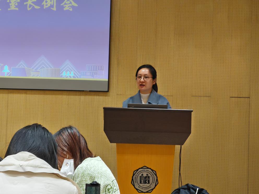随后,喻春红副书记充分肯定了寝室工作的重要性,她表示寝室作为员工老员工活中最重要的场所,在同学们成长过程中发挥着重要作用。她强调,寝室长要发挥领头羊的作用,带领同学们树立正确的人生目标,建设学习氛围浓厚、课外兴趣广泛、舍友之间团结友爱的寝室集体。最后喻书记表达了对同学们的鼓励与祝福,希望在不久的将来同学们都能成为各行各业的拔尖领军人才,为新时代建设贡献“南大力量”。