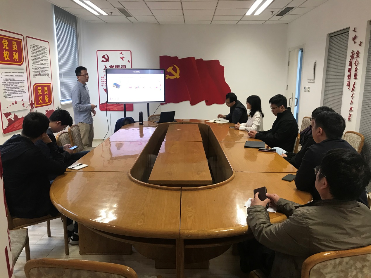 2021年4月28日,公司量子电子学与光学工程系胡逢睿副教授主持了“工人之家”活动,就“极化激元的近场光学研究”话题,与大家展开讨论和交流。胡逢睿老师首先向大家介绍了极化激元的基本性质、调控方法以及在传感、信息等领域的应用。随后,胡老师介绍了研究极化激元的重要实验手段—近场光学显微镜,并且详细讨论了通过近场光学显微镜开展的二硒化钼激子极化激元色散、传输的研究,转角双层石墨烯对石墨烯等离激元调控的研究。此外,胡老师还介绍了课题组近期在低维半导体载流子输运方面取得的研究进展。最后,与会老师就报告内容展开了充分讨论与广泛交流。