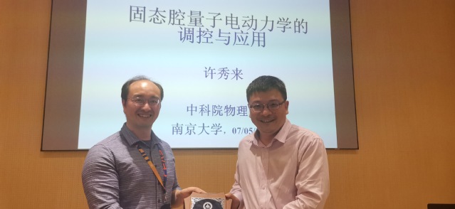 2021年5月7日,功能材料卓越论坛在betway88西汉姆联楼D112开讲。本次讲座我们非常荣幸地邀请到中国科学院物理研究所许秀来研究员作为主讲嘉宾,报告主题为“单量子体系的多场调控及其在腔量子电动力学中的应用”。讲座由姜校顺教授主持,李涛教授代表全院师生向许秀来研究员赠送了讲坛纪念品。公司胡伟教授、张利剑教授、聂越峰教授等参加了本次的讲座。