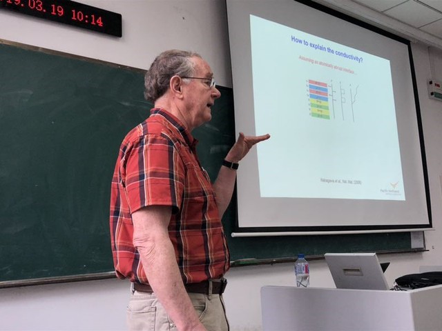 这门为期两周的短期课程涵盖最先进的光谱和成像技术的组成、结构、键合和电子性能。课程介绍离子散射、核反应分析、X射线光电子能谱和衍射、紫外光电子能谱、角分辨光电子能谱(能带拟合)、近边缘X射线吸收谱、扩展X射线吸收精细结构、X射线线性二色性、X射线磁圆二色性、透射电镜和电子能量损失谱等的物理学基础和实验实施,将应用于表征复杂氧化物和半导体的表面、内部界面和外延膜。同时带领员工深入研究一些现象,从内部界面的二维电子空穴气的形成到晶体氧化物和矿物表面中小分子化学及生物聚合物的形成。此外,每个员工自由选择主题,使用讲座中讨论的一种以上的表征技术,展示一个简短的英语研究报告。Chambers教授对每一位员工的口头陈述和PPT给出了建设性反馈,以提高每位员工的陈述技能。