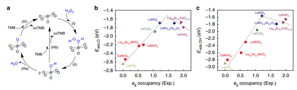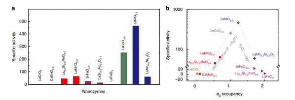 On the one hand, this work obtains the descriptors governing the activity of transition metal oxide peroxidase, which provides a theoretical basis and guidance for the rational design of metal oxide nanozymes in the future; on the other hand, the catalytic mechanism of metal oxides nanozymes is also obtained through theoretical calculations, which provides theoretical support for the further development of nanozymes. Relevant research results, entitled "eg occupancy as an effective descriptor for the catalytic activity of perovskite oxide-based peroxidase mimics", were published in Nature Communications on February 11, 2019. After the paper was published, it was reported by Phys.org as "Design principles for peroxidase-mimicking nanozymes".
